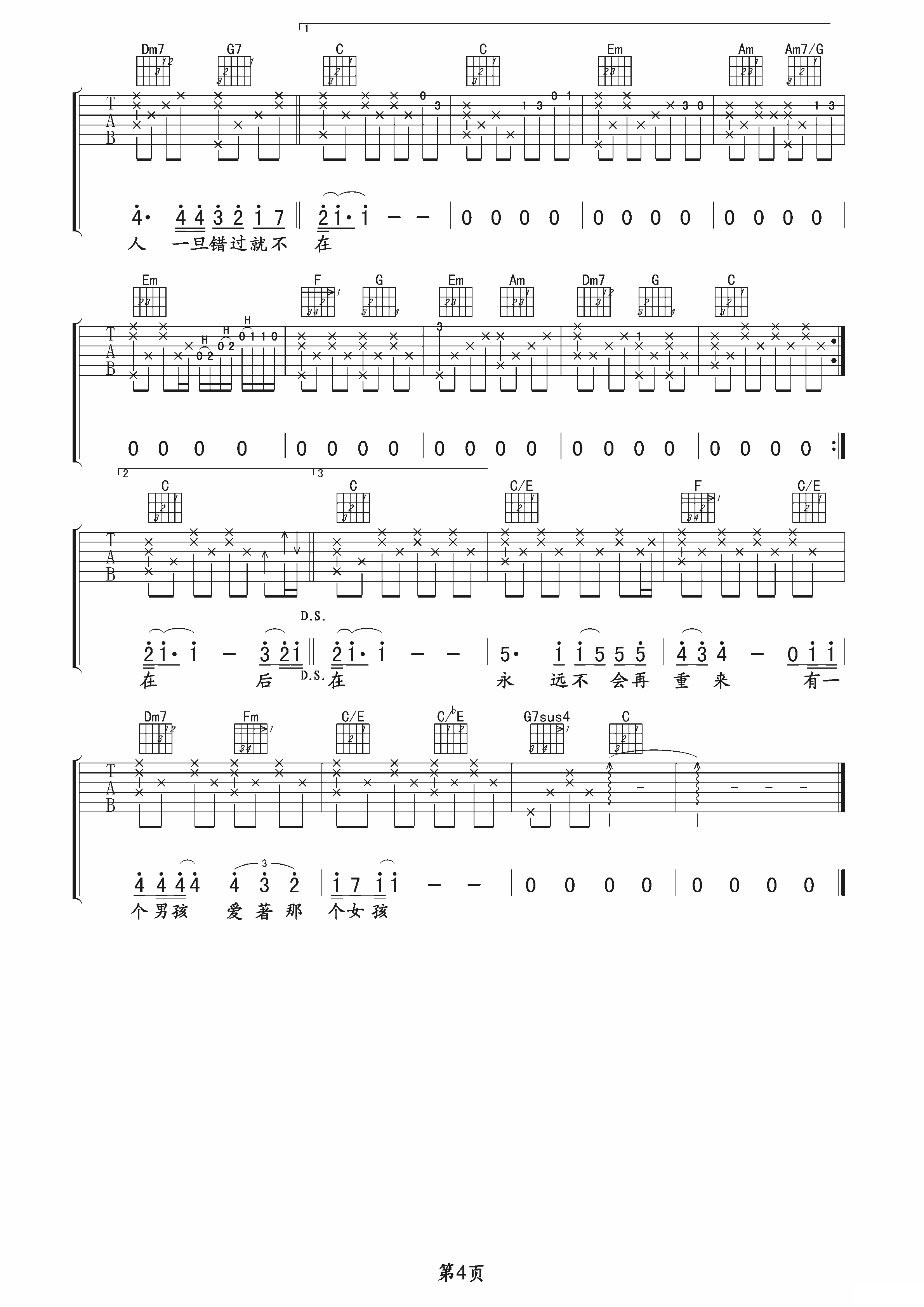 零几年听的情歌吉他谱 C调高清无限延音