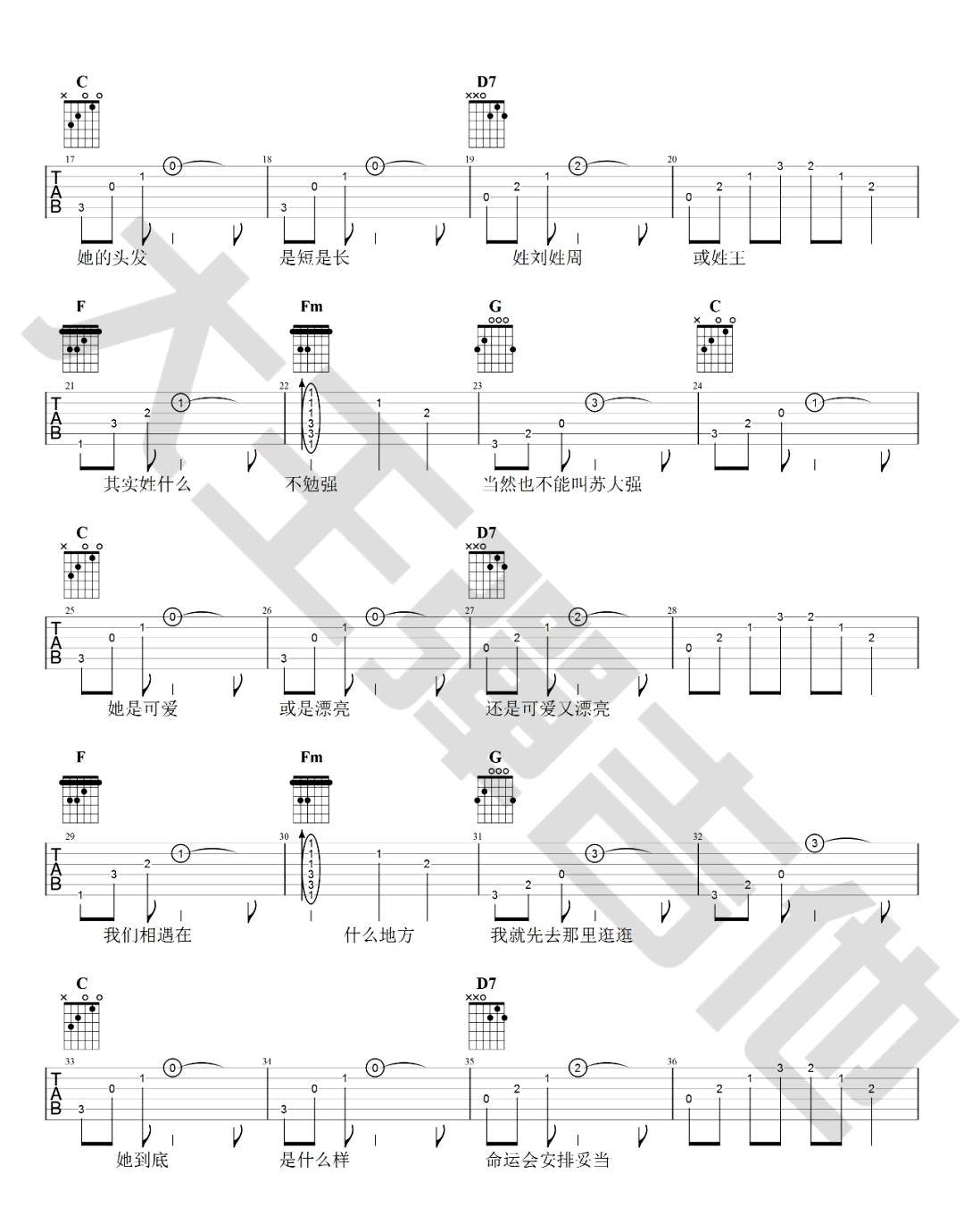 姑娘吉他谱C调第(2)页