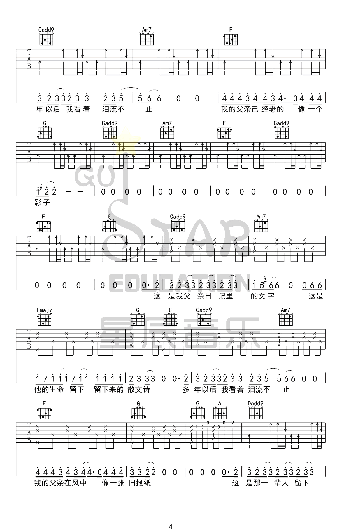 父亲写的散文诗吉他谱 C调原版(李健/许飞)- 多谱网