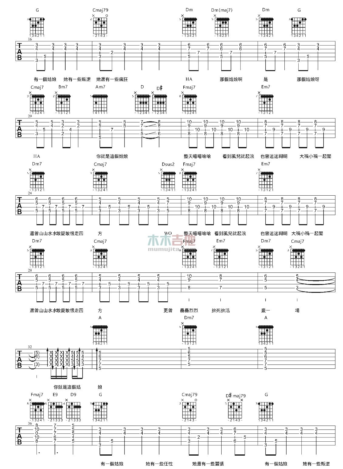 多谱网最新吉他谱民谣吉他谱有一个姑娘吉他谱