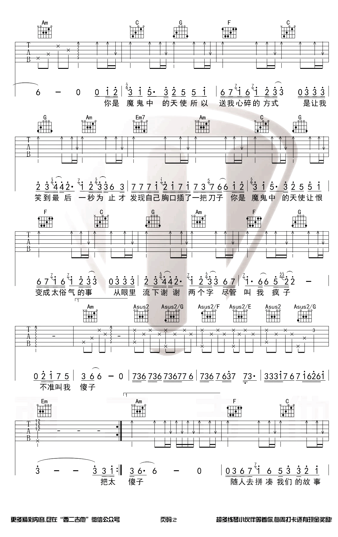 魔鬼中的天使吉他谱C调教学视频第(2)页