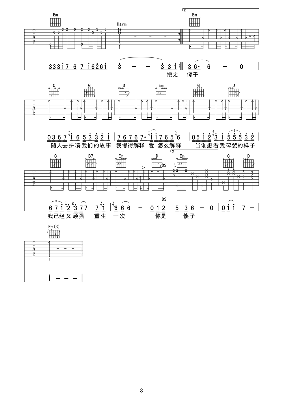 魔鬼中的天使曲谱D调吉他谱第(3)页