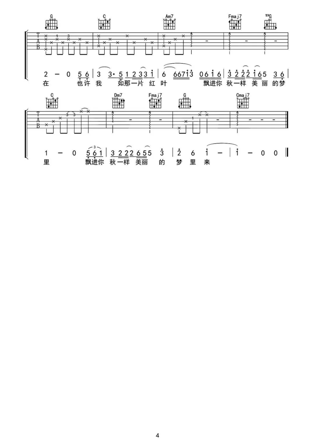 昨天的你的现在的未来曲谱B调吉他谱第(4)页