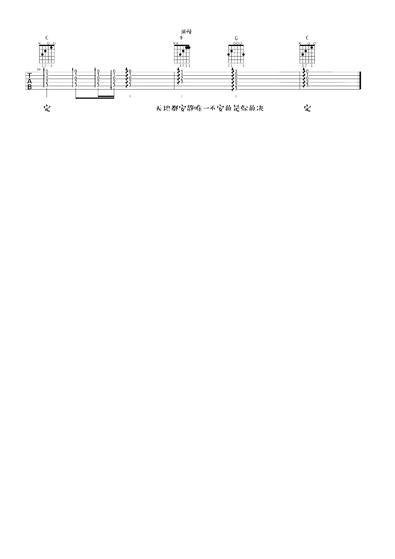 当爱在靠近曲谱 C调 吉他谱(3)